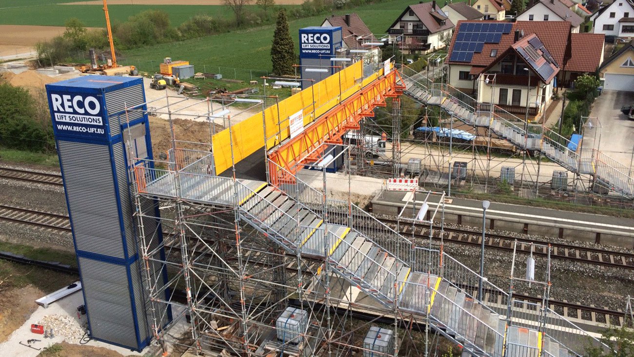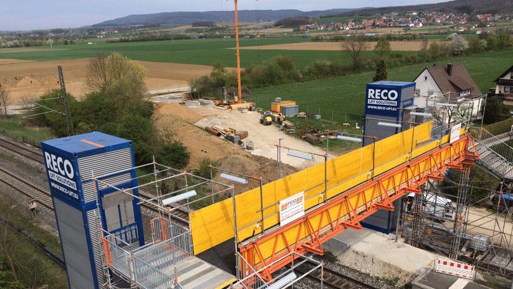 Auf dem deutschen Bahnmarkt hat die DB Netze AG den Zuschlag für den Einsatz von 2 temporären Personenaufzügen RECO PP. Damit hat die Deutsche Bahn zum ersten Mal in Deutschland eine temporäre Fußgängerbrücke komplett barrierefrei zugänglich gemacht.
