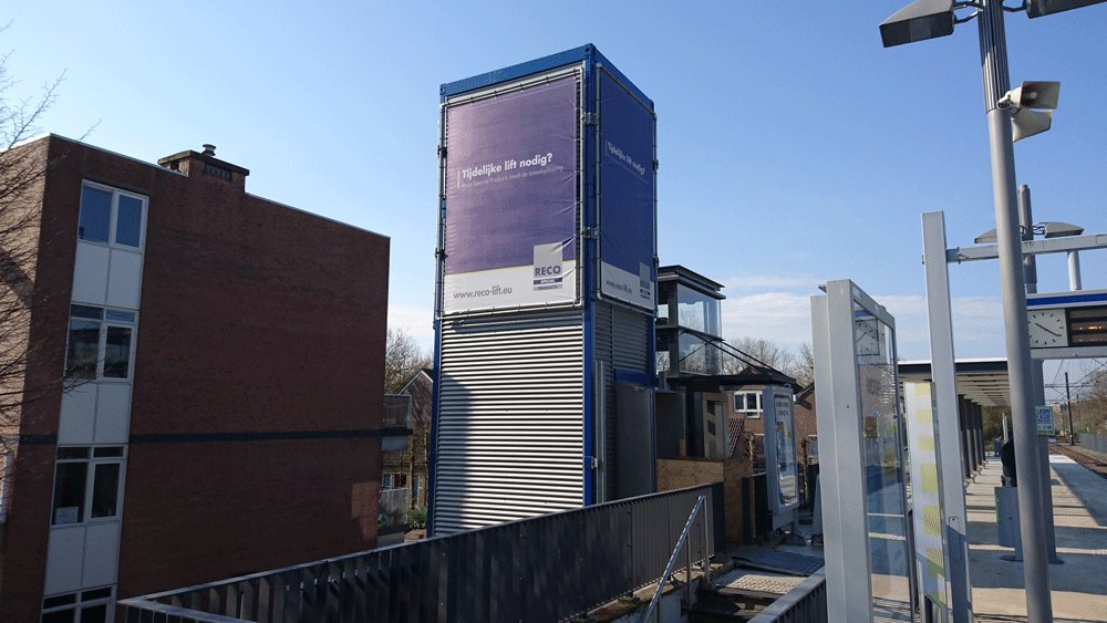 Provisorischer Personenaufzug RECO PP ersetzt ausgebrannten Personenaufzug bei Randstad Rail in Zoetermeer