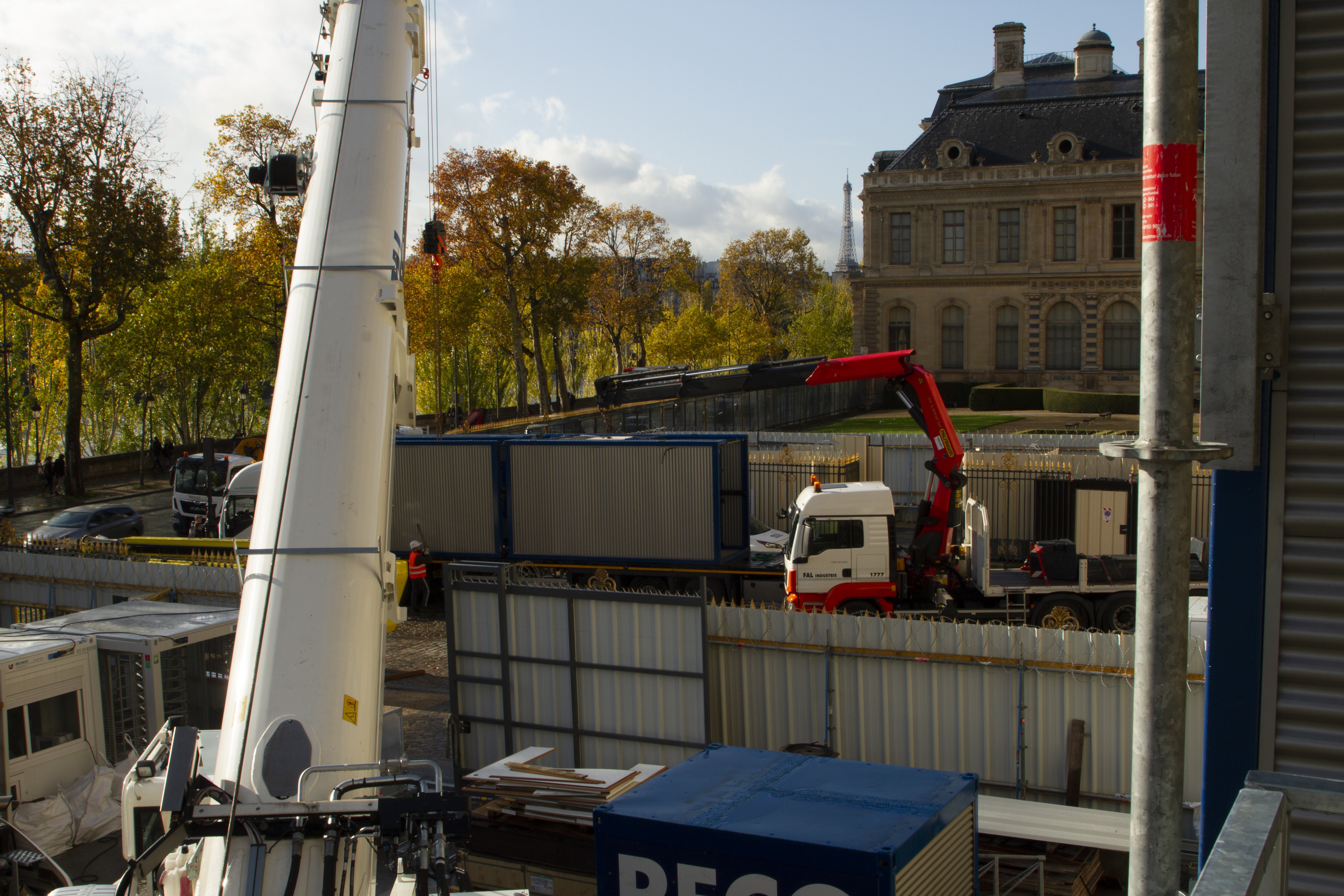 Nach nur einem Tag der Montage befand sich unser Aufzugsschacht an der Fassade des Louvre. Der Aufzug ist nun vollständig von den Gerüsten von Europe Echafaudage umgeben. Bureau Veritas übernahm dann die Inspektion der Anlage. Wir sind stolz auf das Vertrauen, das das Musée du Louvre in unsere Dienste gesetzt hat, und blicken auf eine angenehme Zusammenarbeit mit Europe Echafaudage zurück. Die nächsten 2 Jahre wird der RECO-Aufzug hier in Betrieb bleiben, bis der neue Personenaufzug geliefert wird.