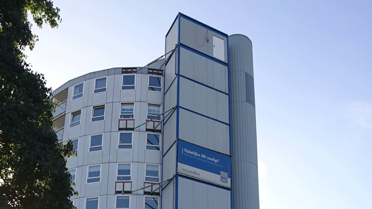 Der Sohn eines Bewohners schlug beim Gebäudeeigentümer Alarm. In Absprache mit dem Aufzugsberater stellte sich heraus, dass die Situation in der Tat Probleme für die Bewohner und andere Aufzugsbenutzer verursachen würde. Deshalb entschied sich der Eigentümer von Het Anker für einen temporären Aufzug von RECO Aufzug Vermietung. Der aufmerksame Sohn war mit der Lösung sehr zufrieden: "Ich bin gerade im Aufzug... Kompliment. Sieht klasse aus! Sobald man im Aufzug ist, hat man das Gefühl, dass man sich in einem normalen Aufzug befindet".