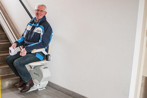 Liftausfall: temporärer Treppenlift auf Texel platziert