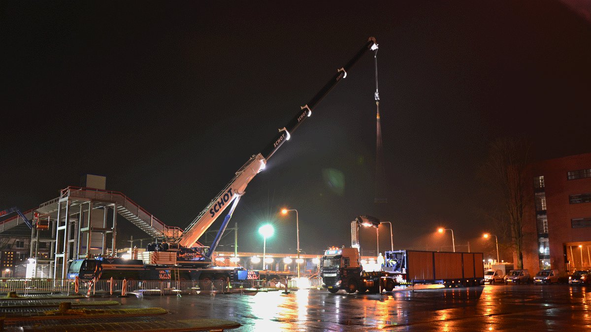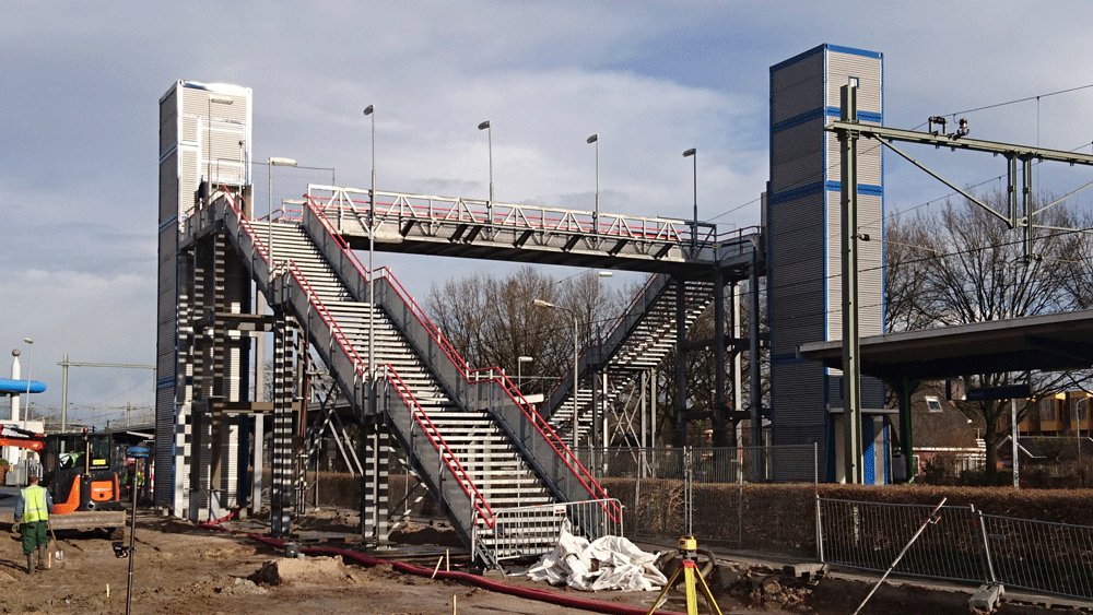 Assen station fitted with two temporary passenger lifts and pedestrian walkway