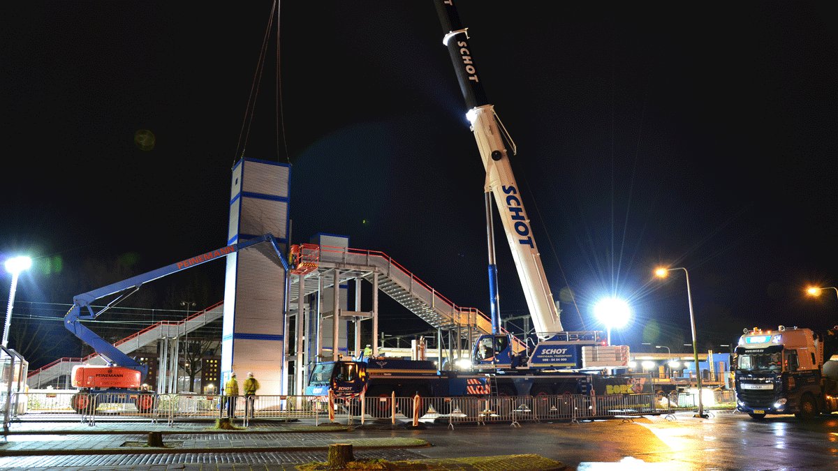 The current location of the station building will soon make way for a road tunnel for through traffic. Consequently, the old station building with pedestrian tunnel will be demolished and a temporary station building erected. A temporary pedestrian bridge over the tracks will replace the tunnel. Reco Lift Solutions has fitted the pedestrian walkway with two temporary Reco PP passenger lifts to ensure it remains accessible for all users.