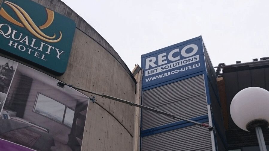 Temporary passenger lift by RECO used for Quality Airport Hotel near Norway Airport