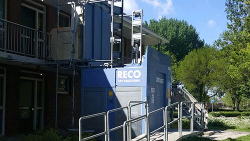 However, because there was not much space available and the lift will be used by both residents and construction workers, in consultation with BM the GEDA Multilift P18S was chosen. This lift is in such a case the perfect temporary solution. The modernisation of the permanent lift will take 16 weeks. Until then, the temporary RECO Lift Solutions lift will remain in place.