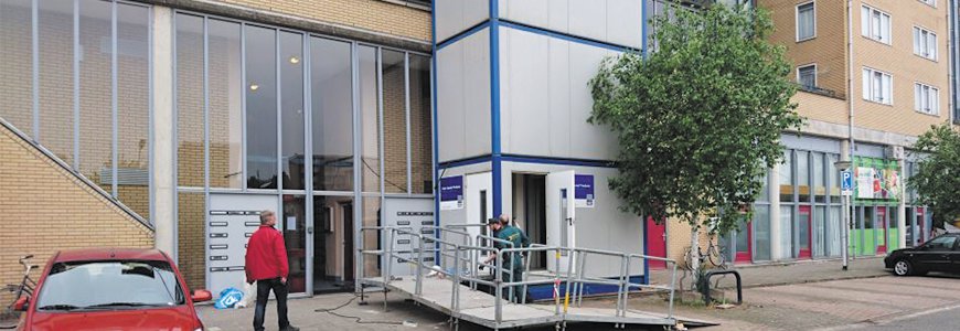RECO Lift Solutions has proved on many occasions that it is able to respond fast to requests for quick solutions. We were recently able to provide another example of our efficient service when Rochdale housing corporation asked for our assistance in Zaandam. Rochdale manages a housing complex on Lucy Stonestraat where the lift was out of order after the hydraulic installation had stopped working due to overheating; since the required parts were not immediately available, Rochdale had been unable to solve the problem. Many of the residents of the complex have difficulty walking. So Rochdale decided to use our expertise and commissioned us to install a temporary lift as soon as possible.