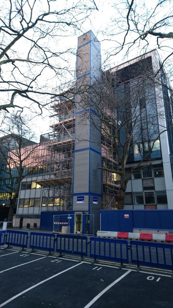 RECO Lift Solutions installs a temporary 28 m high 7-stop RECO PP passenger lift for Imperial College University in London