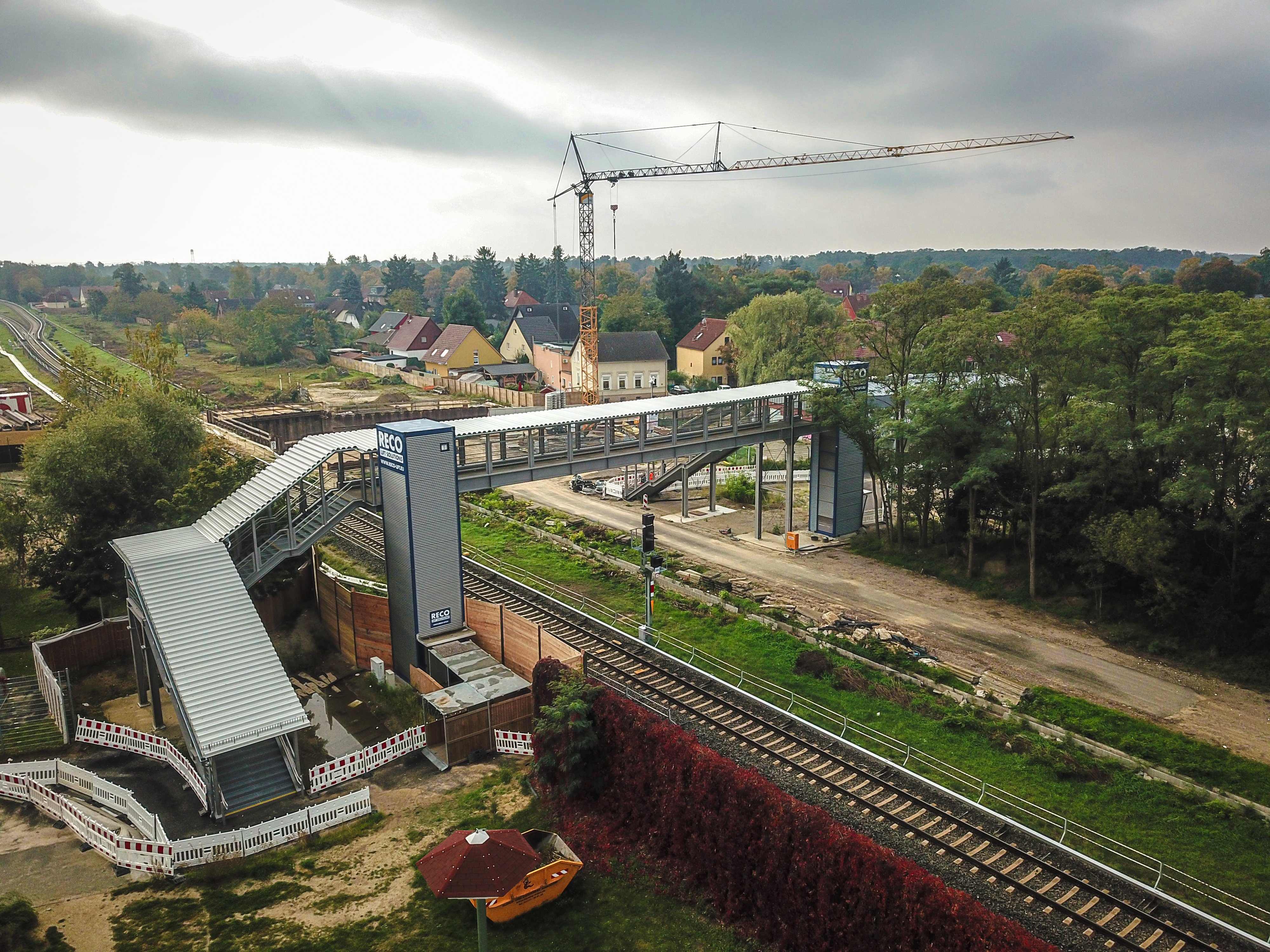 Temprary footbridge and passenger lifts maintain barrier-free railway crossing near Berlin (Germany)