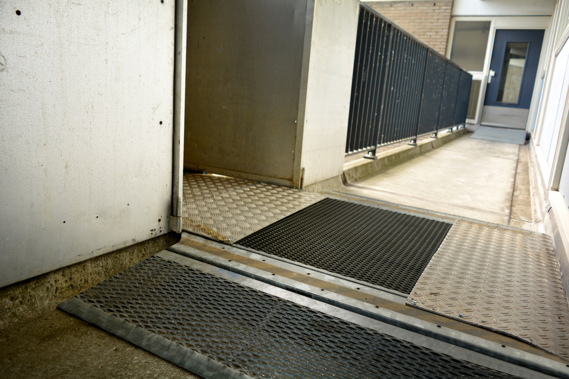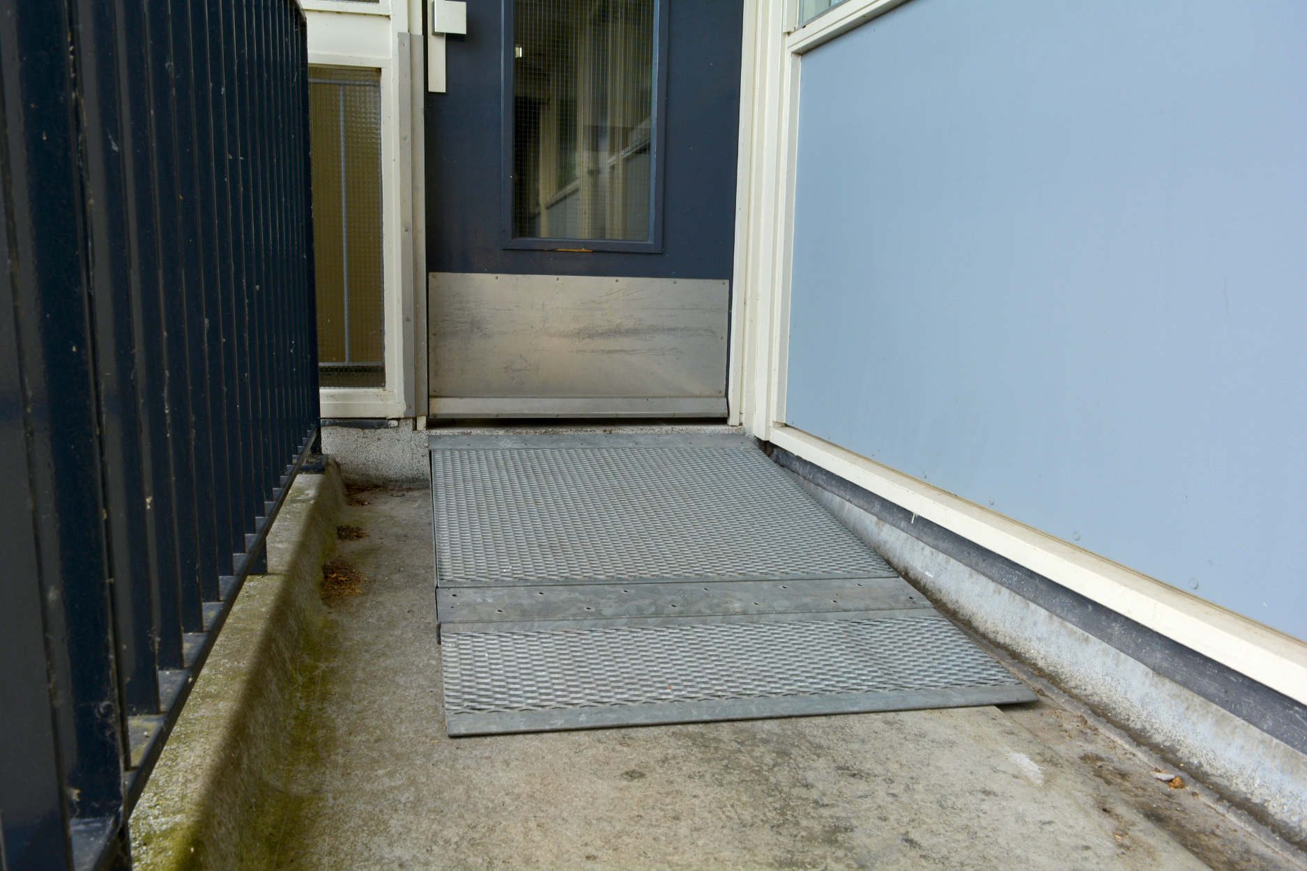 With a small walkway elevation and threshold ramps on each floor, the thresholds between the lift and the walkway have been bridged. In cooperation with the caretaker, we have also modified the fencing on the walkway. For the flat residents living to the left of the stairwell, we placed ramps at the stairwell on each floor. This way, every resident has a barrier-free walking route from street to flat.