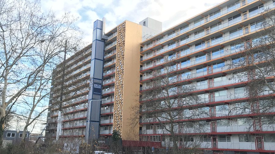 The renovation of flat 1 is now in an advanced stage and Reco Lift PPE has proven its worth. During the rental period, the lift made around 1250 trips per day. The renovations of the following flats will be carried out in the same way.