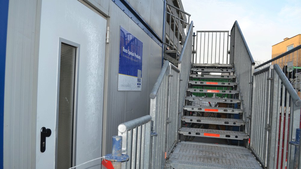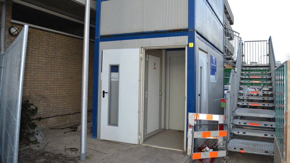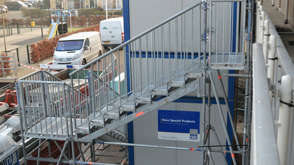 Temporary passenger lift and staircase deployed in Hazerswoude Rijndijk