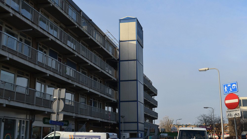 A complete lift renovation is being carried out in the Willem Kloosstraat apartment building in Hazerswoude Rijndijk. The entire internal lift is being replaced and is therefore temporarily out of service. We at RECO Lift Solutions have been approached by the president of the owners' association early on in the process to see what the options were for installing a temporary lift