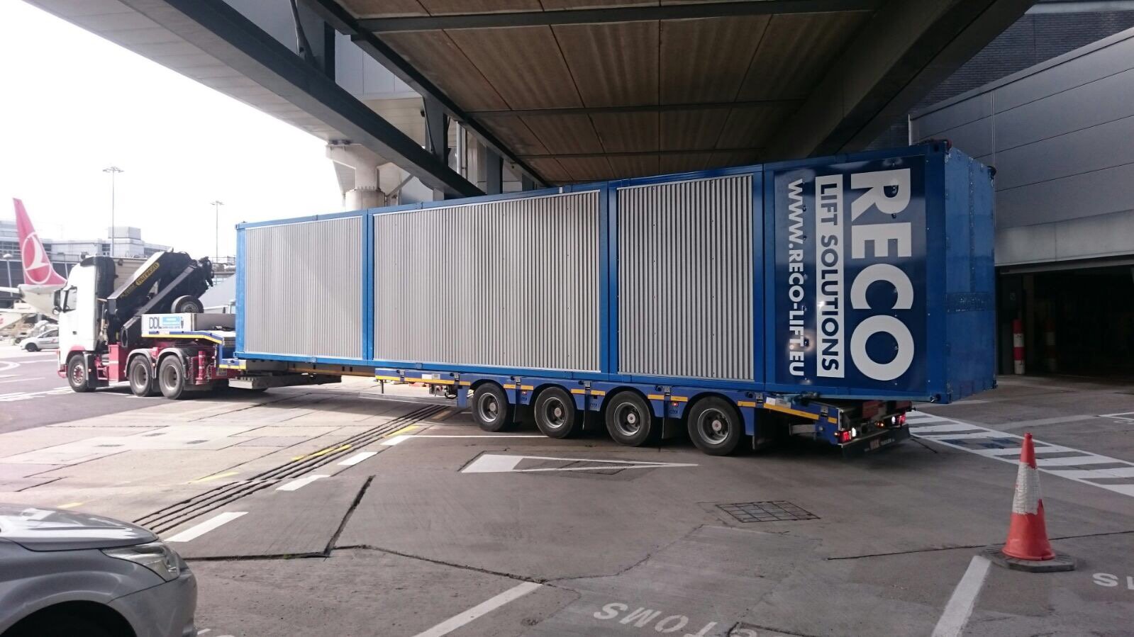 A passenger lift at Pier C at Dublin airport is currently being upgraded by ThyssenKrupp. To ensure barrier-free access for passengers during this modernisation work, Dublin airport (DAA) has opted to install a temporary RECO PP (Plug & Play) passenger lift. RECO’s client in this project is Flynn Management & Construction (FMC).