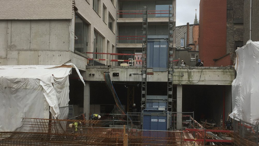 In het hart van de Gentse binnenstad ligt de Kouter. Aan deze bloemenmarkt werkt projectontwikkelaar Matexi op dit moment aan het project “Kouterdreef”, waar zij stijlvolle boetieks en residentiële luxe appartementen ontwikkeld. Deze worden later dit jaar opgeleverd. Om potentiële kopers alvast een barrièrevrije toegang tot de verschillende verdiepingen van het pand te kunnen verschaffen, heeft Matexi voor de inzet van een tijdelijke 3-stops GEDA Mulitlift P18S gekozen.