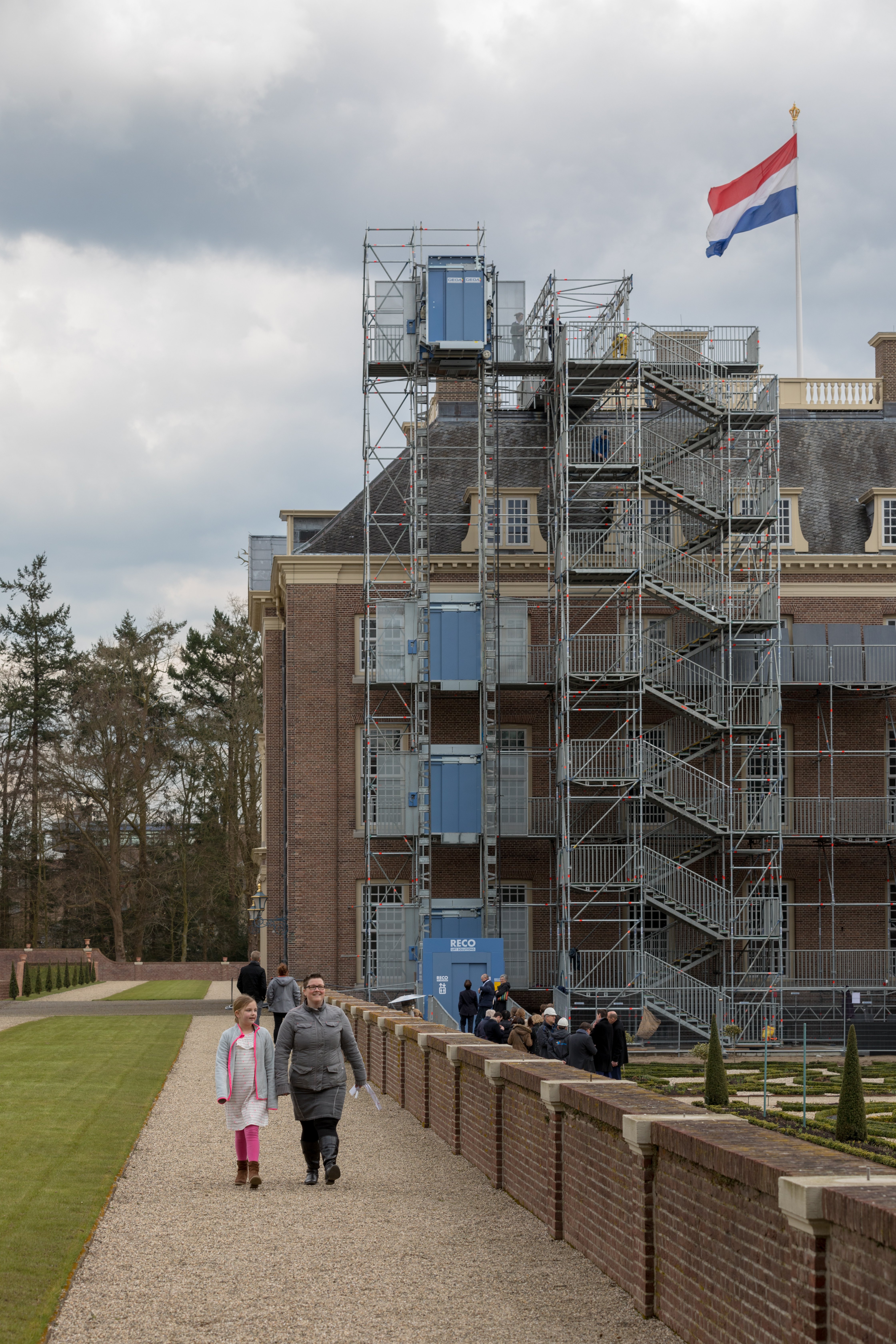 Een volledige renovatie van Paleis Het Loo en toch toegankelijk voor publiek; Paleis Het Loo biedt een vervangende attractie door middel van een lift aan de buitenzijde van het paleis voor een indrukwekkend uitzicht vanaf het paleisdak. Als verhuurspecialist van materieel heeft RECO deze mooie opdracht van Paleis Het Loo weten binnen te halen. Drie galerijen met een trappenconstructie en een tijdelijke lift bieden de bezoeker een uniek uitzicht vanaf het dak en een blik op de renovatiewerkzaamheden.